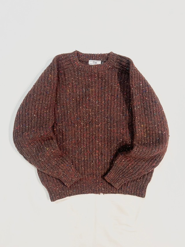 【size about M 身幅56 着丈60 裄丈84】 ブラウンベースにネップの入ったウールニット old gapではよく見るこのシリーズ 肉厚のガシッとした質感が◎