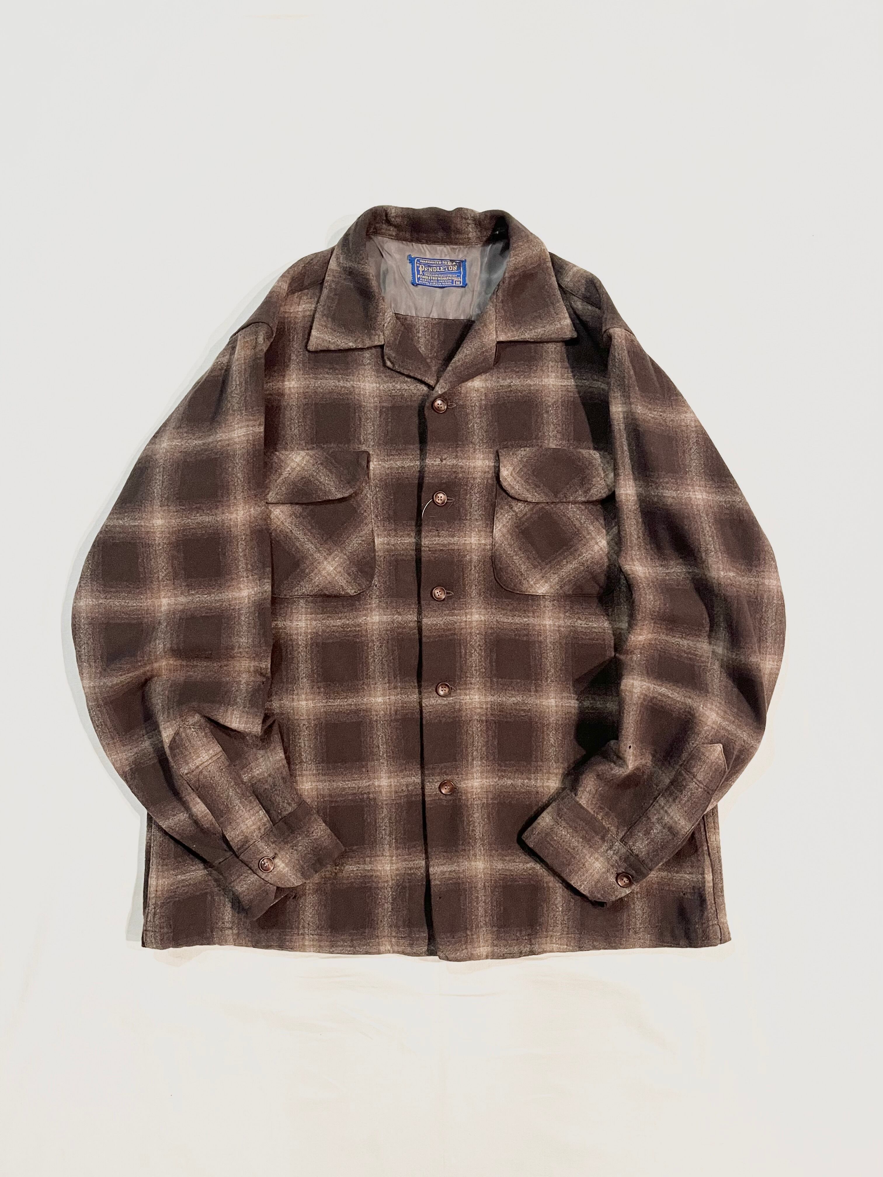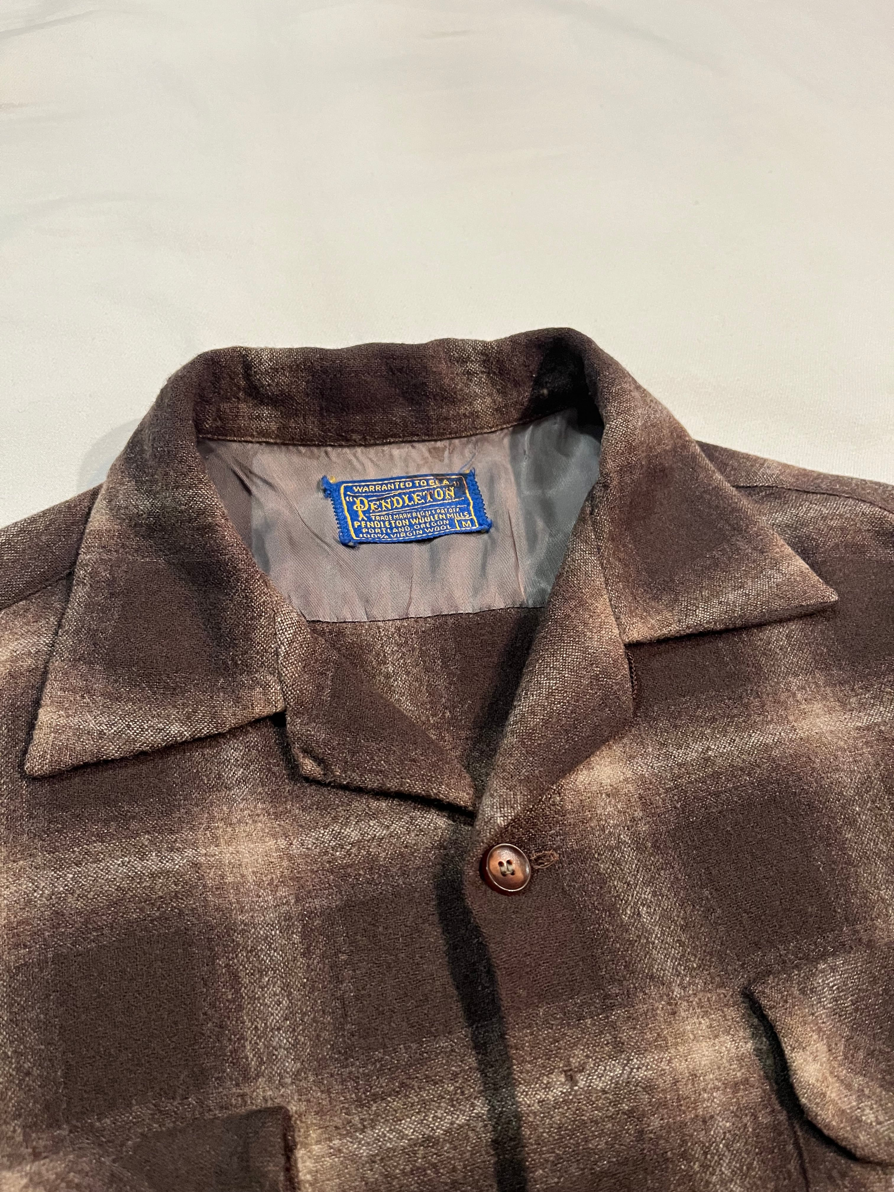 1950s PENDLETON wool opene collar shirt "ombre plaid"