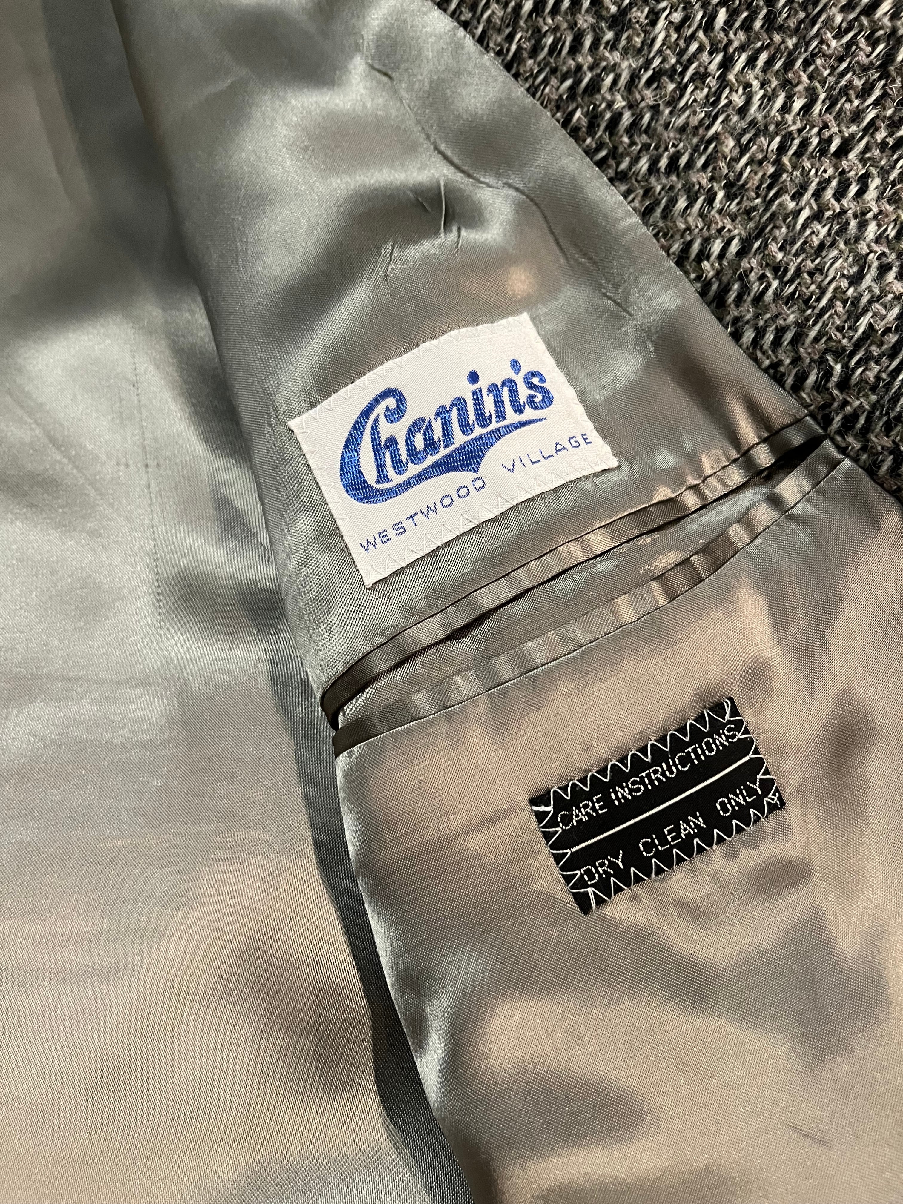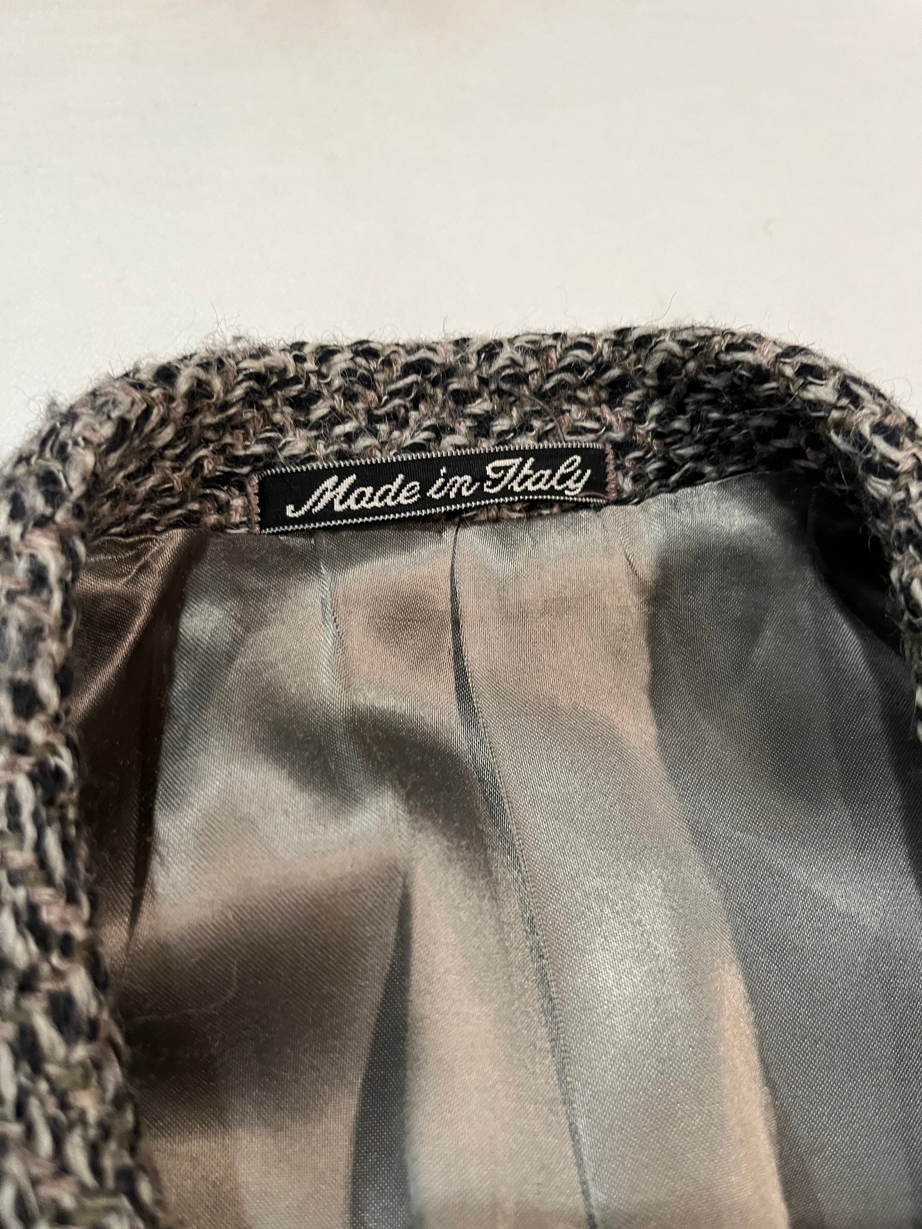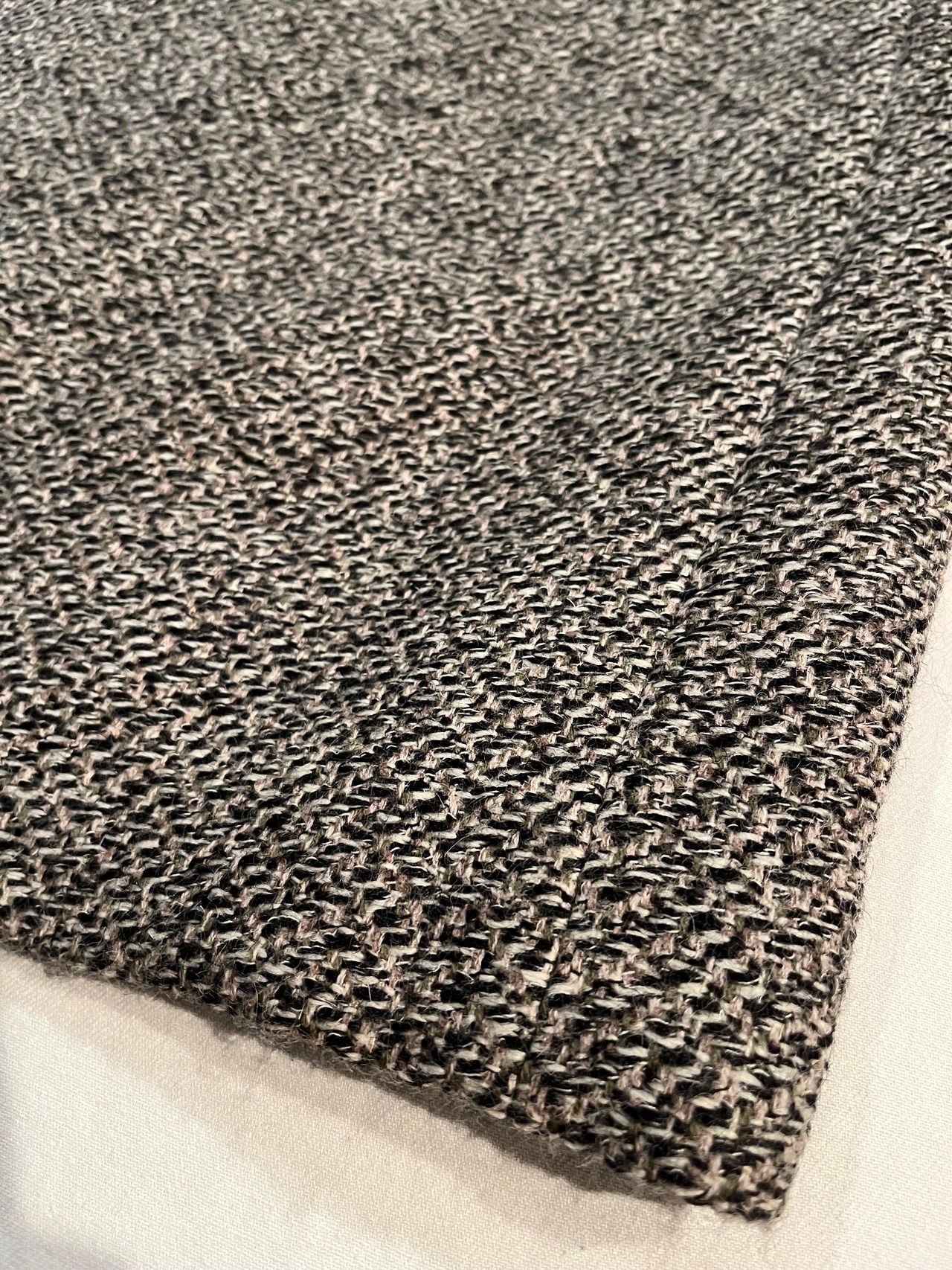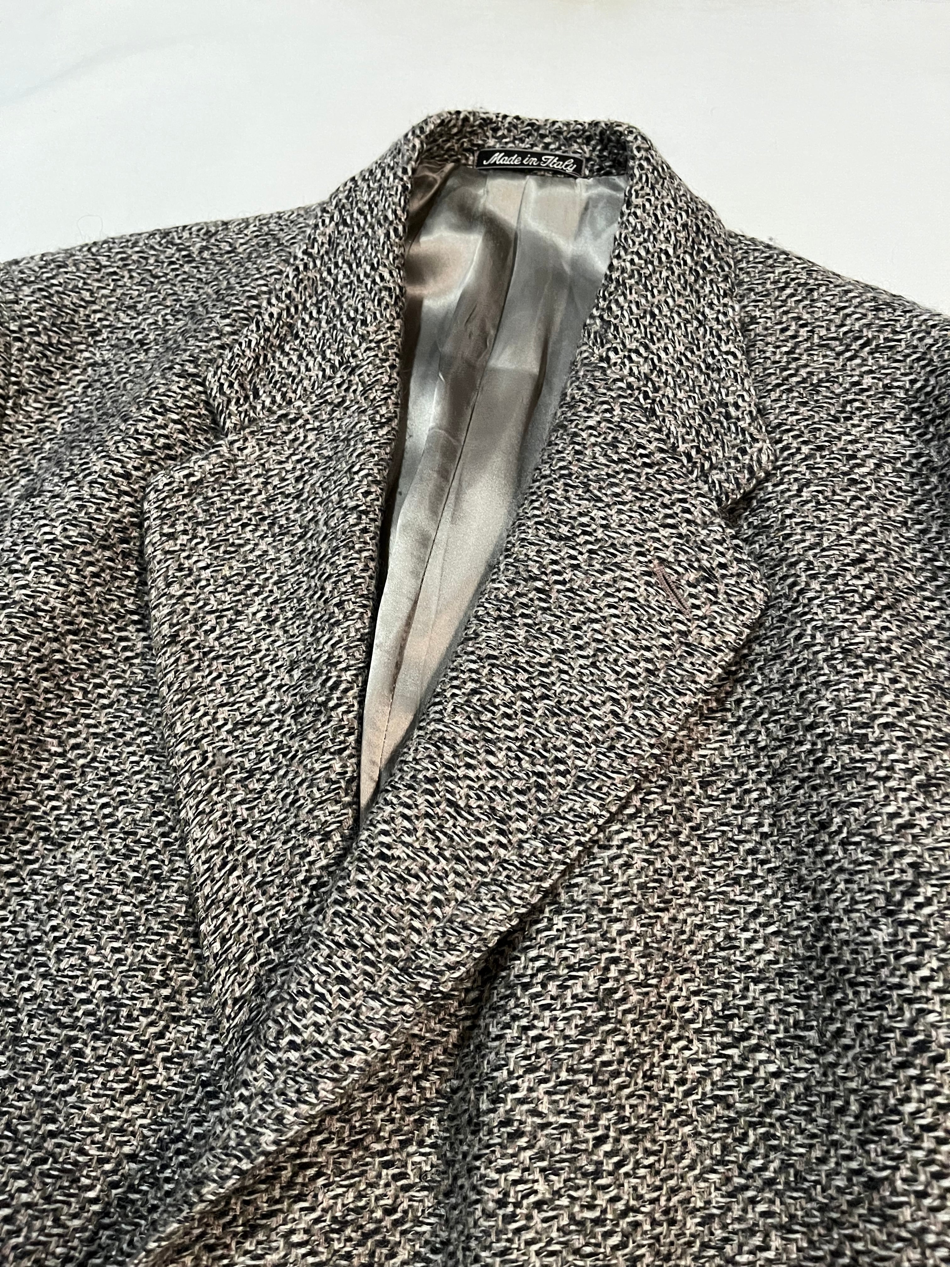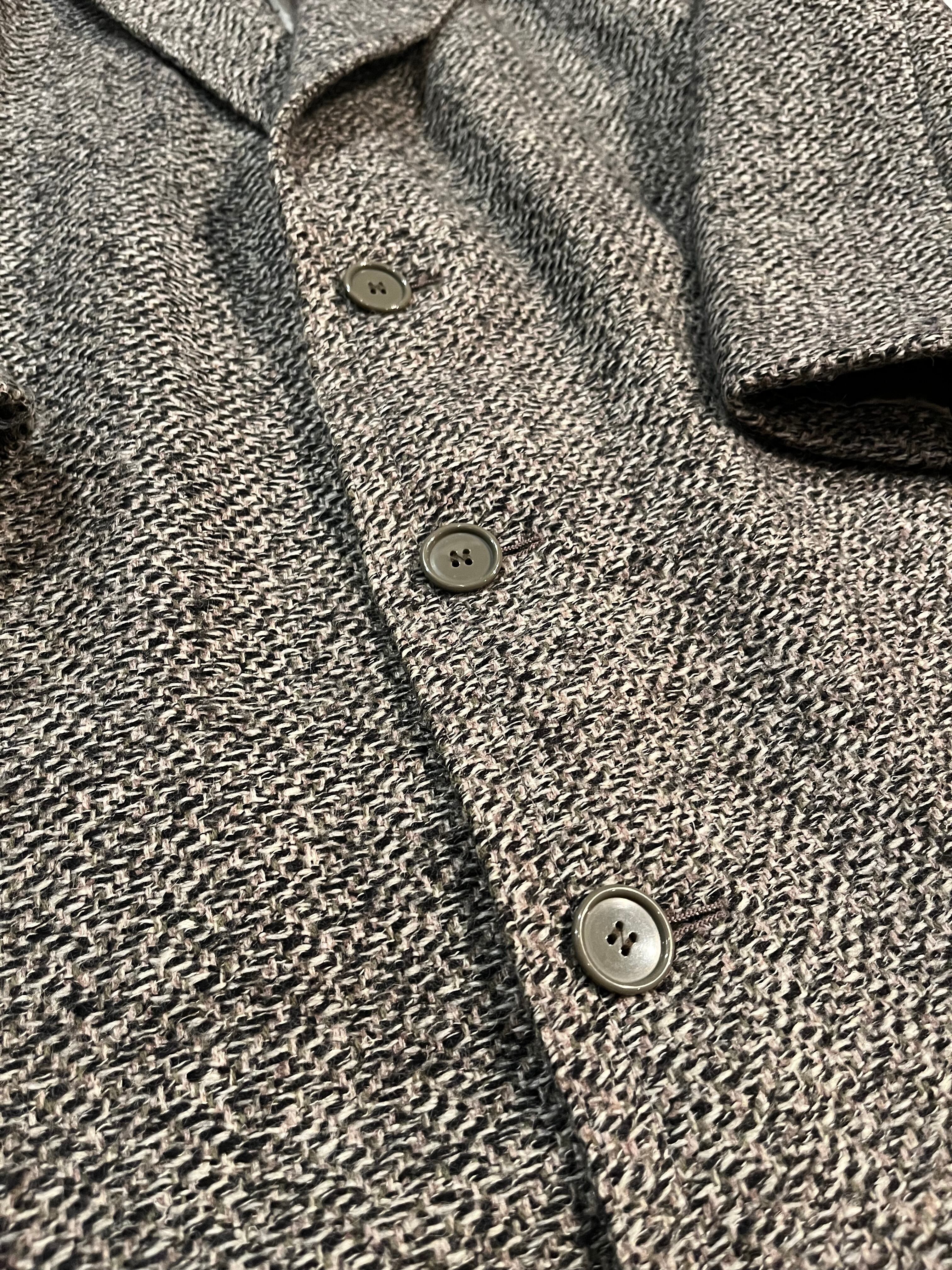 ごま塩のような織り、肩の落ちるシルエット