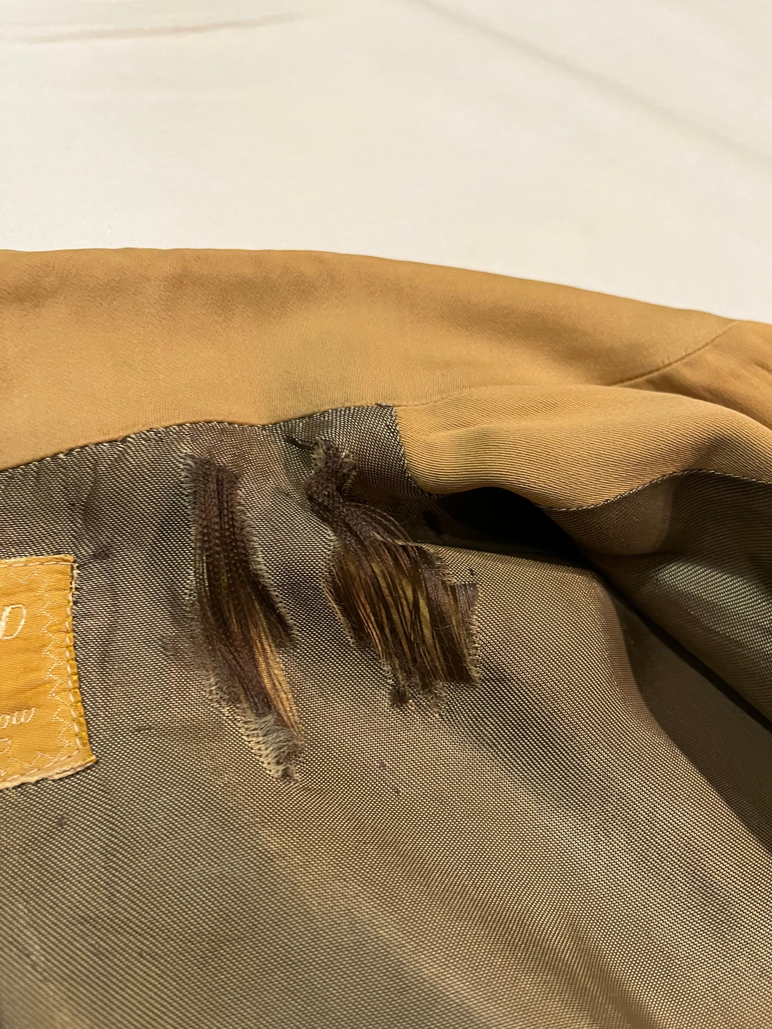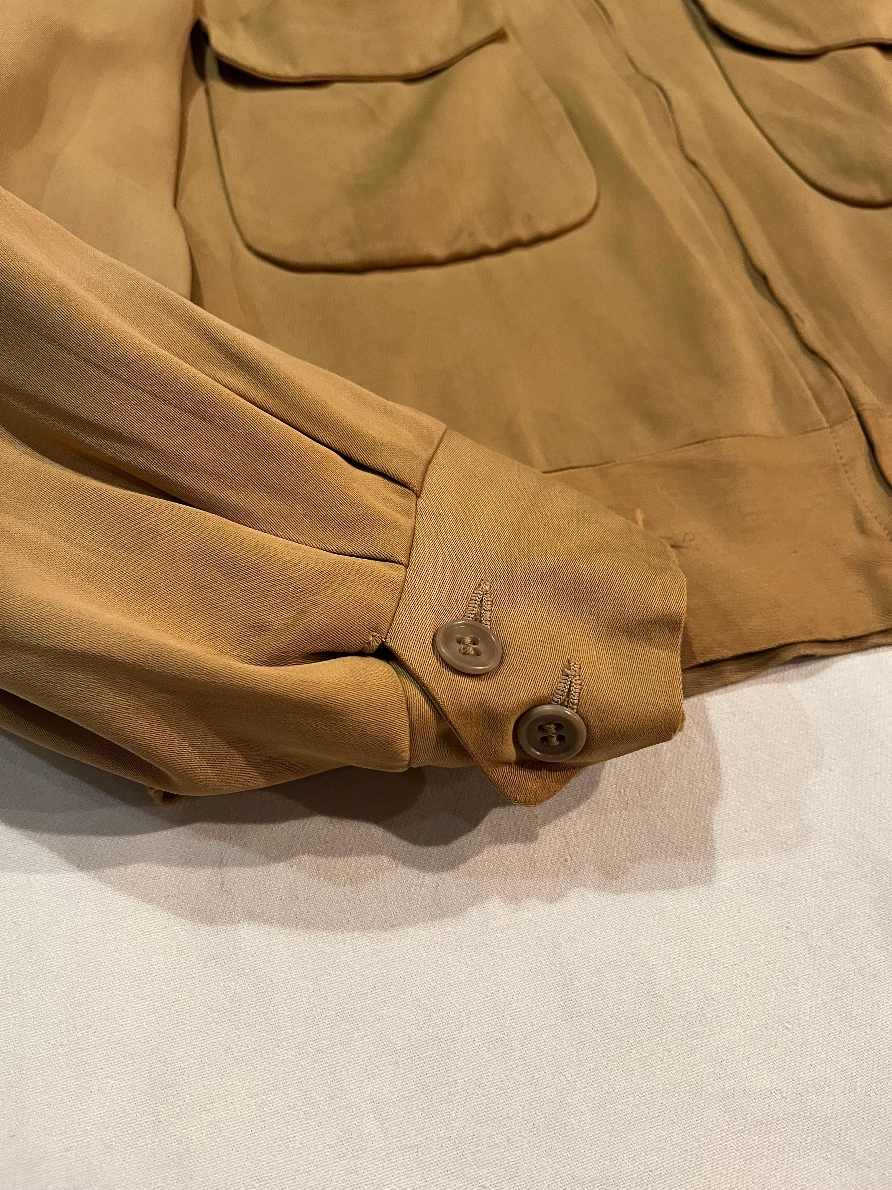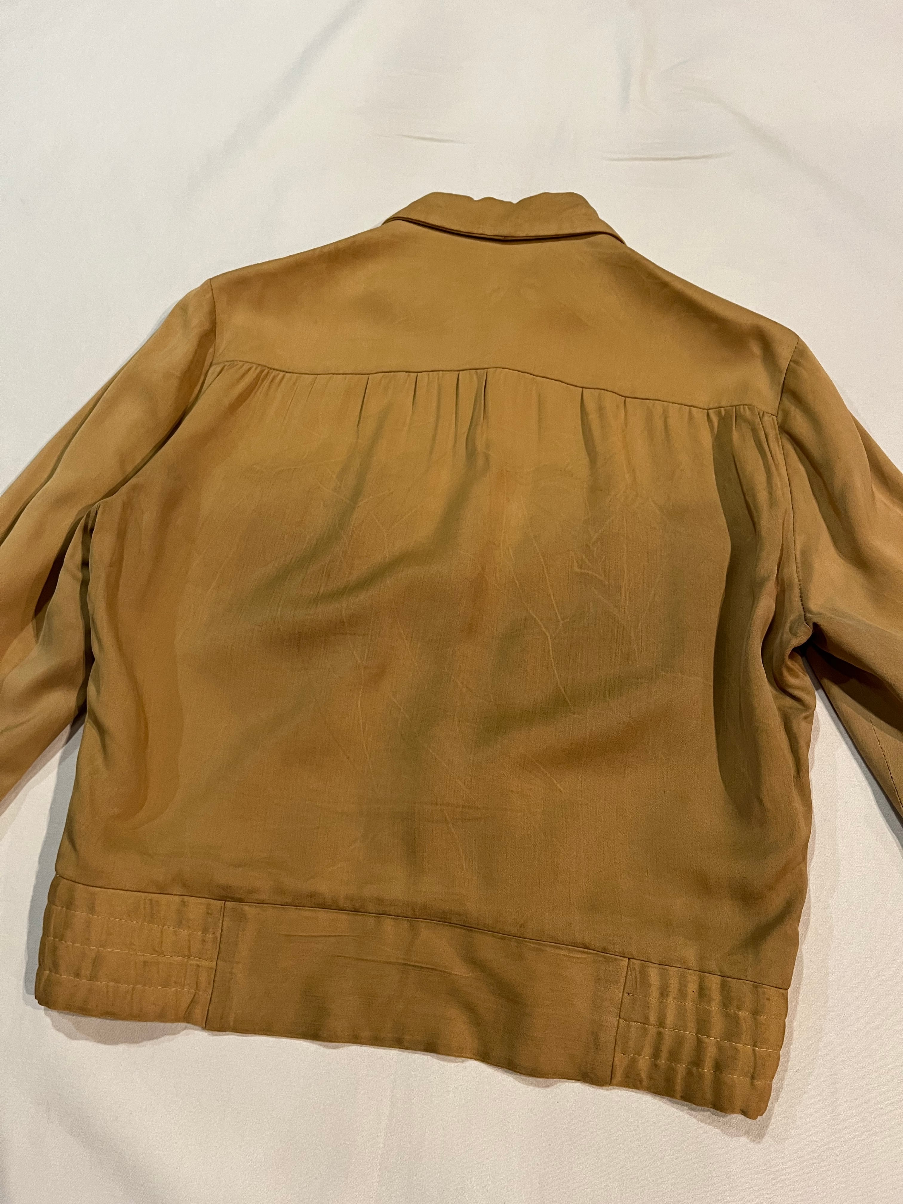 マスタードカラーのレーヨンギャバジンジャケット