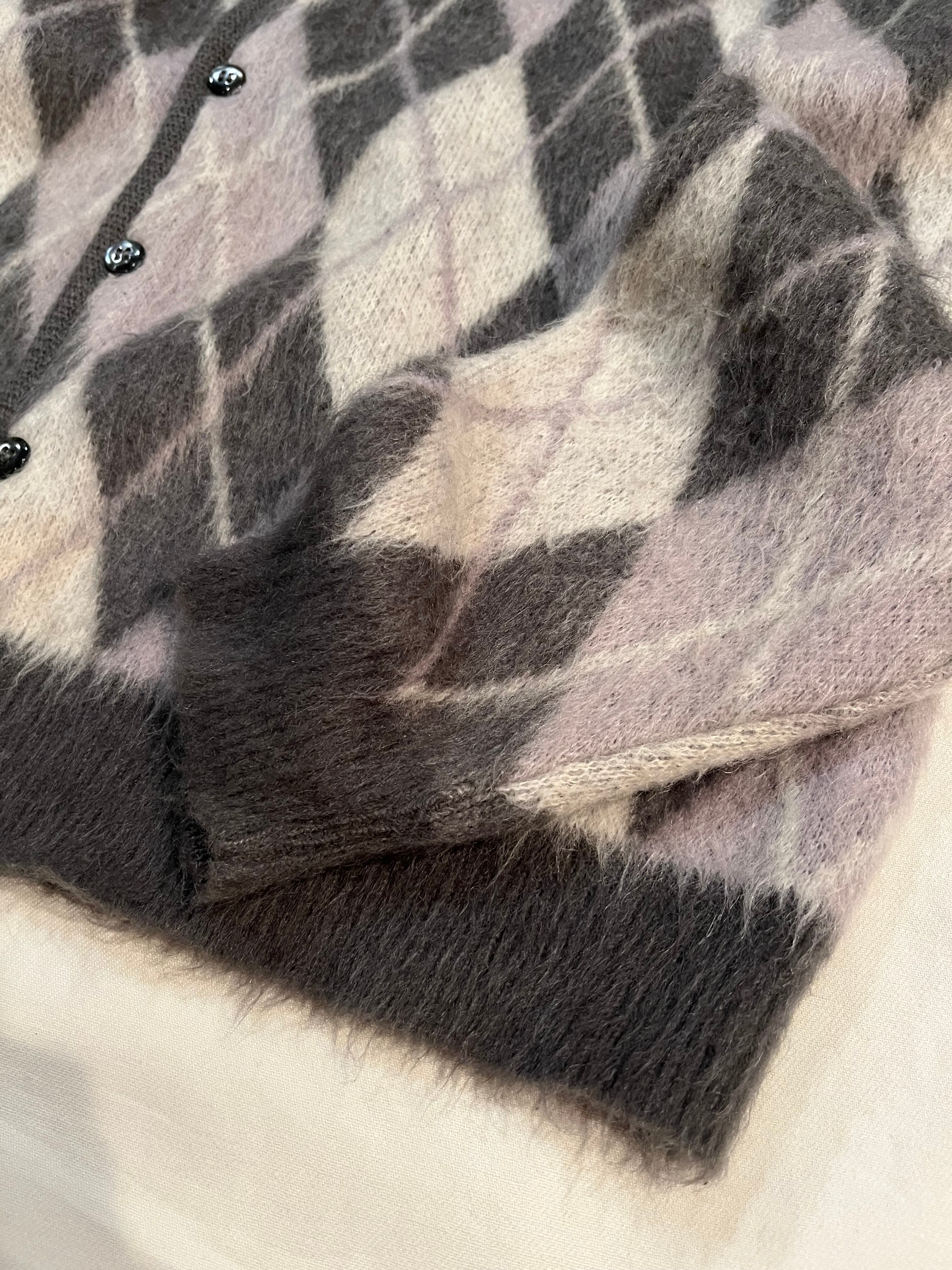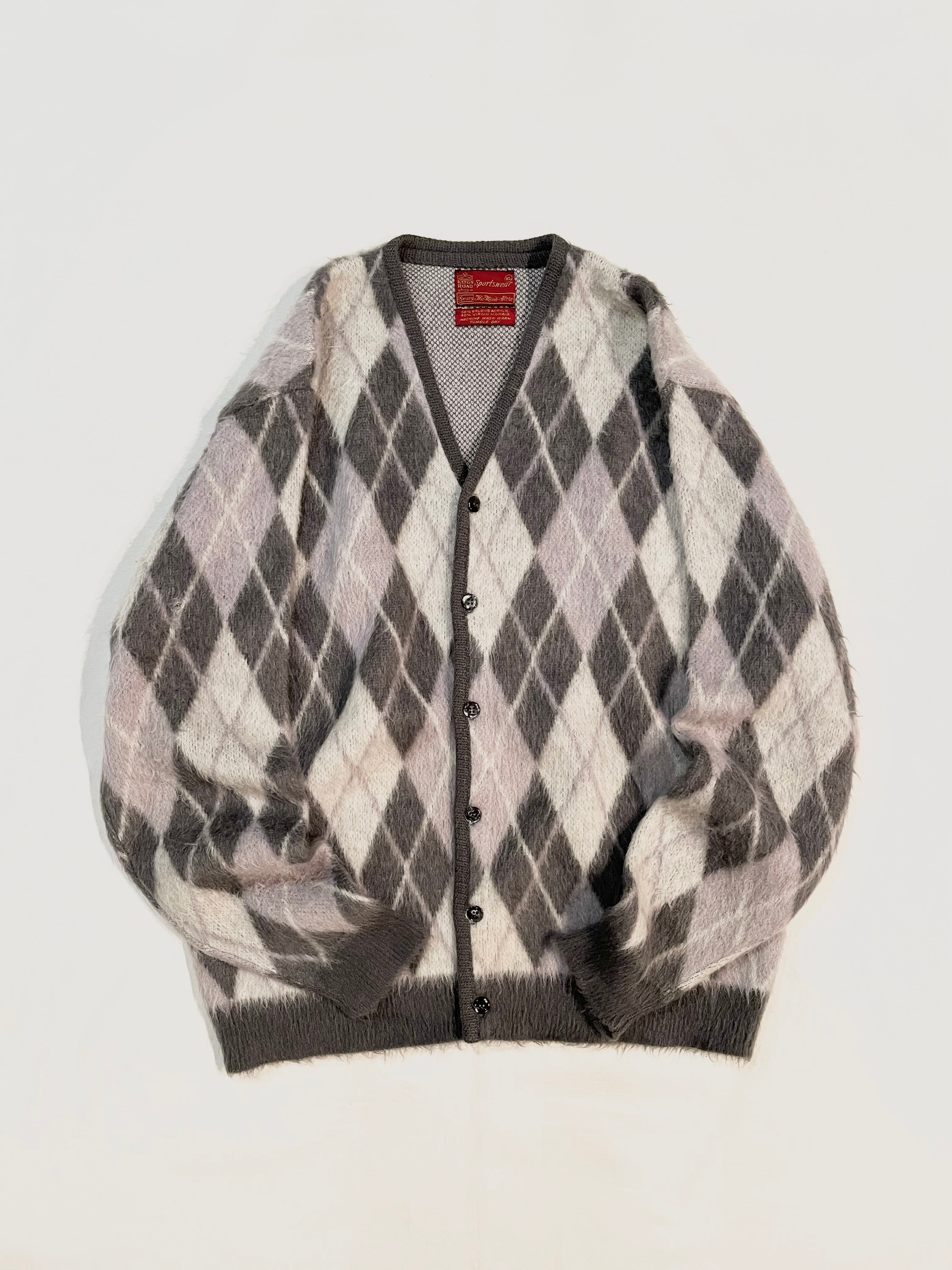 1960s Sears acrylic×mohair knit cardigan "argyle pattern"