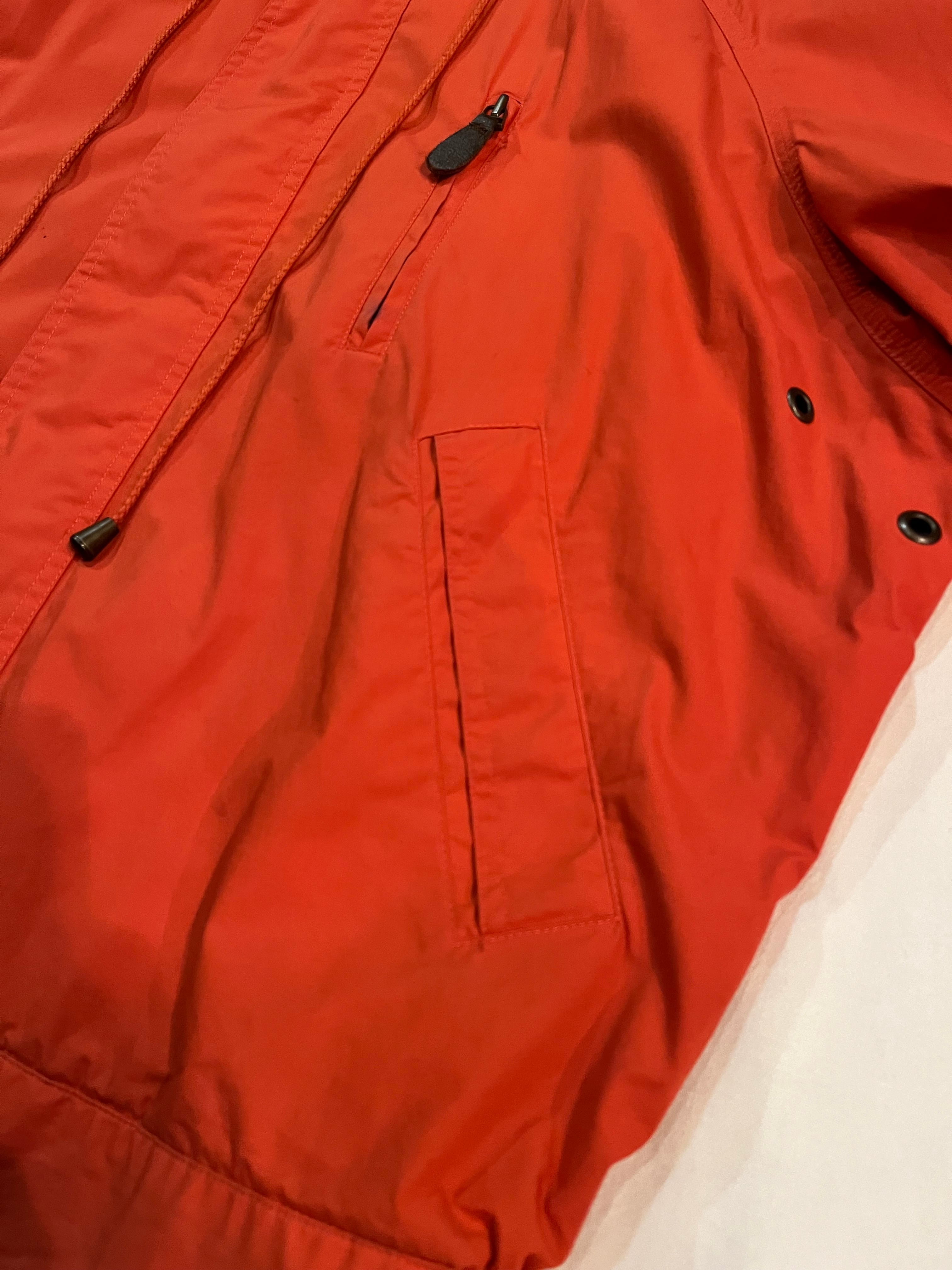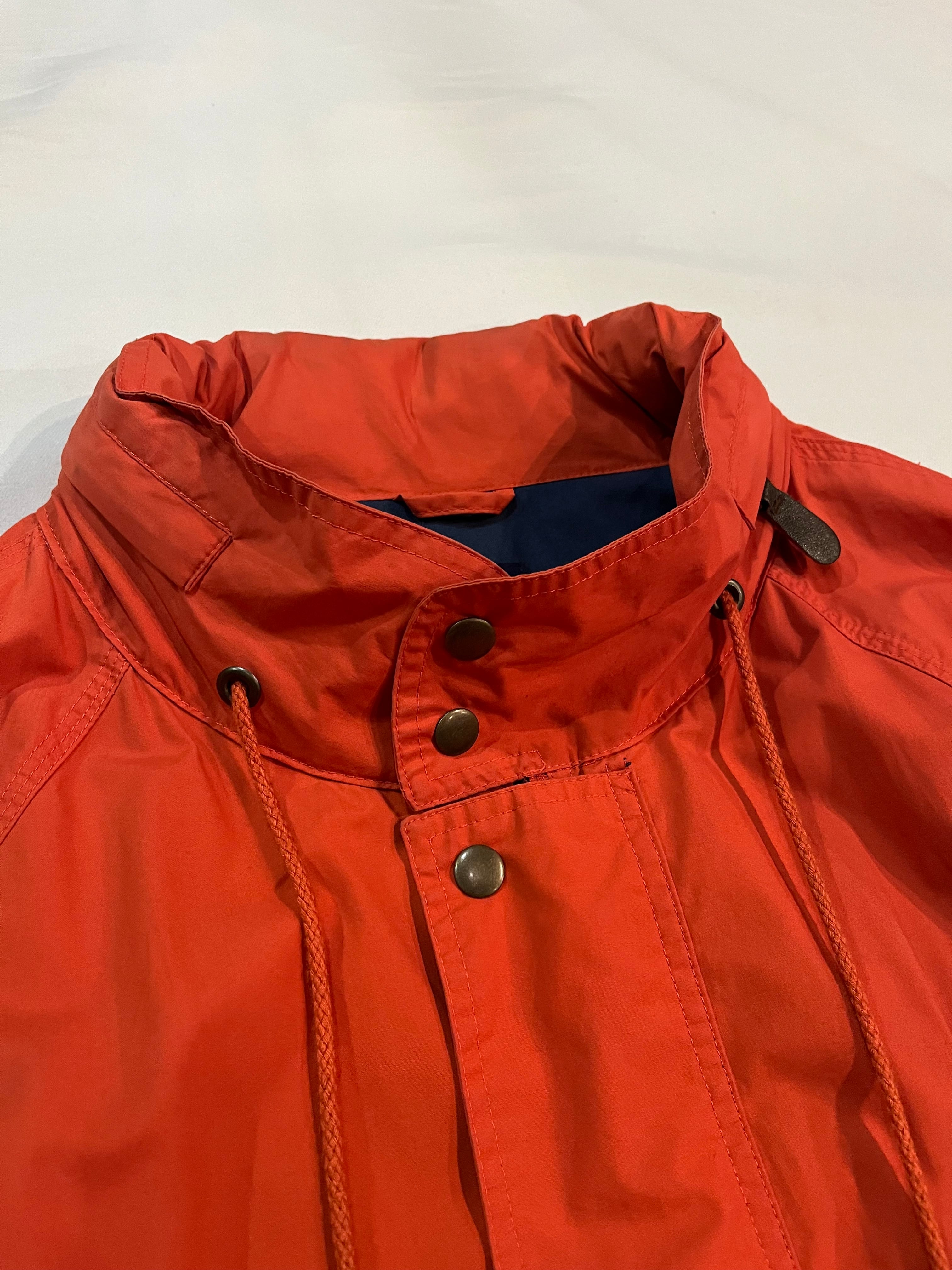 発色良いオレンジカラーの短丈ジャケット