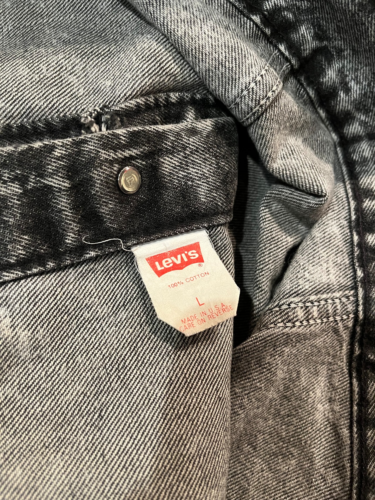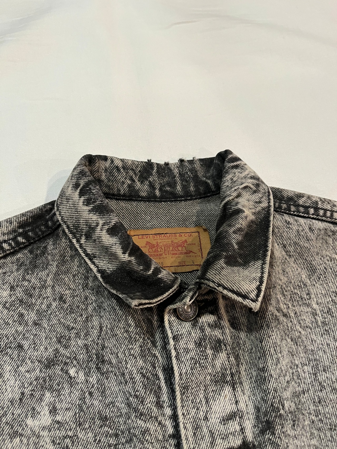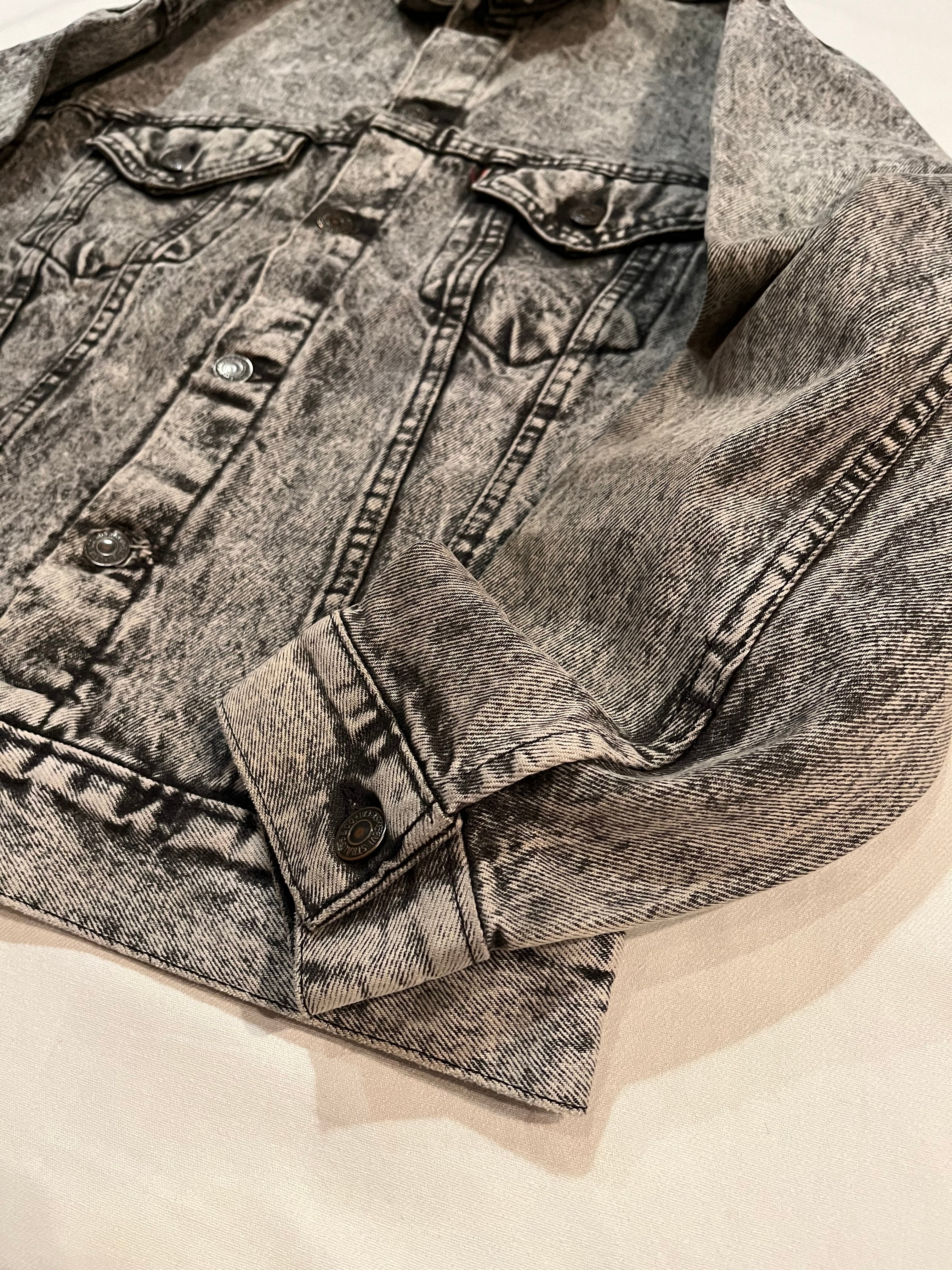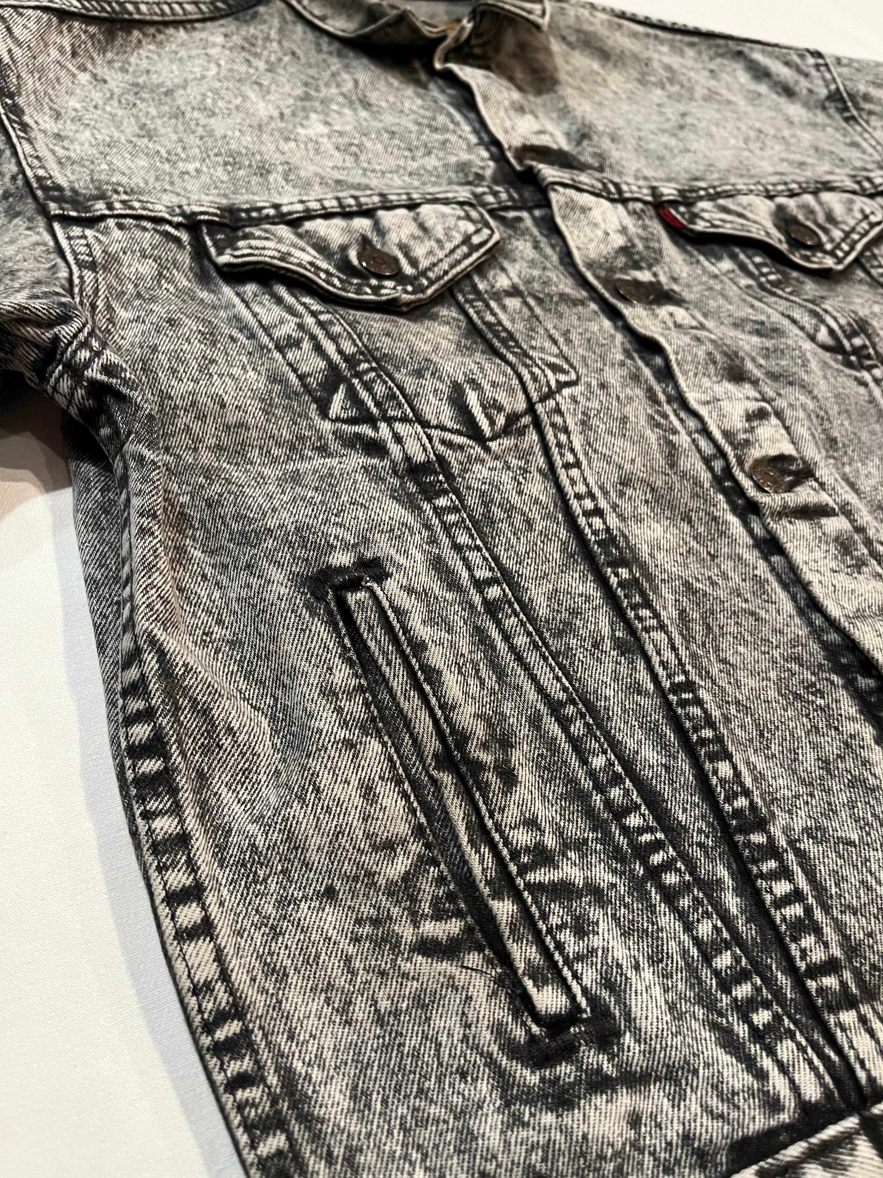 1980s Levi's 57508 black denim jacket "chemical wash"