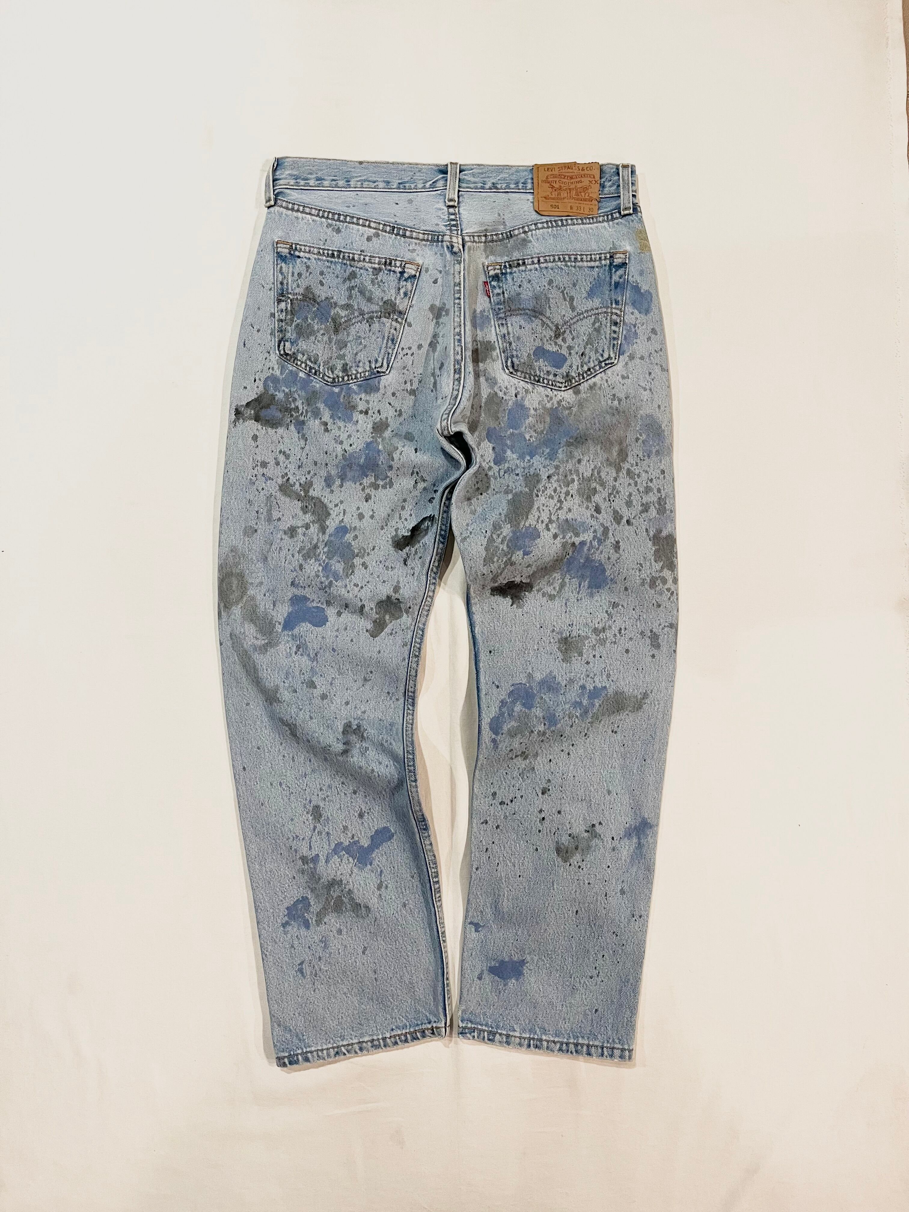 アイスウォッシュカラーの501にペンキが飛んだ雰囲気ある1本