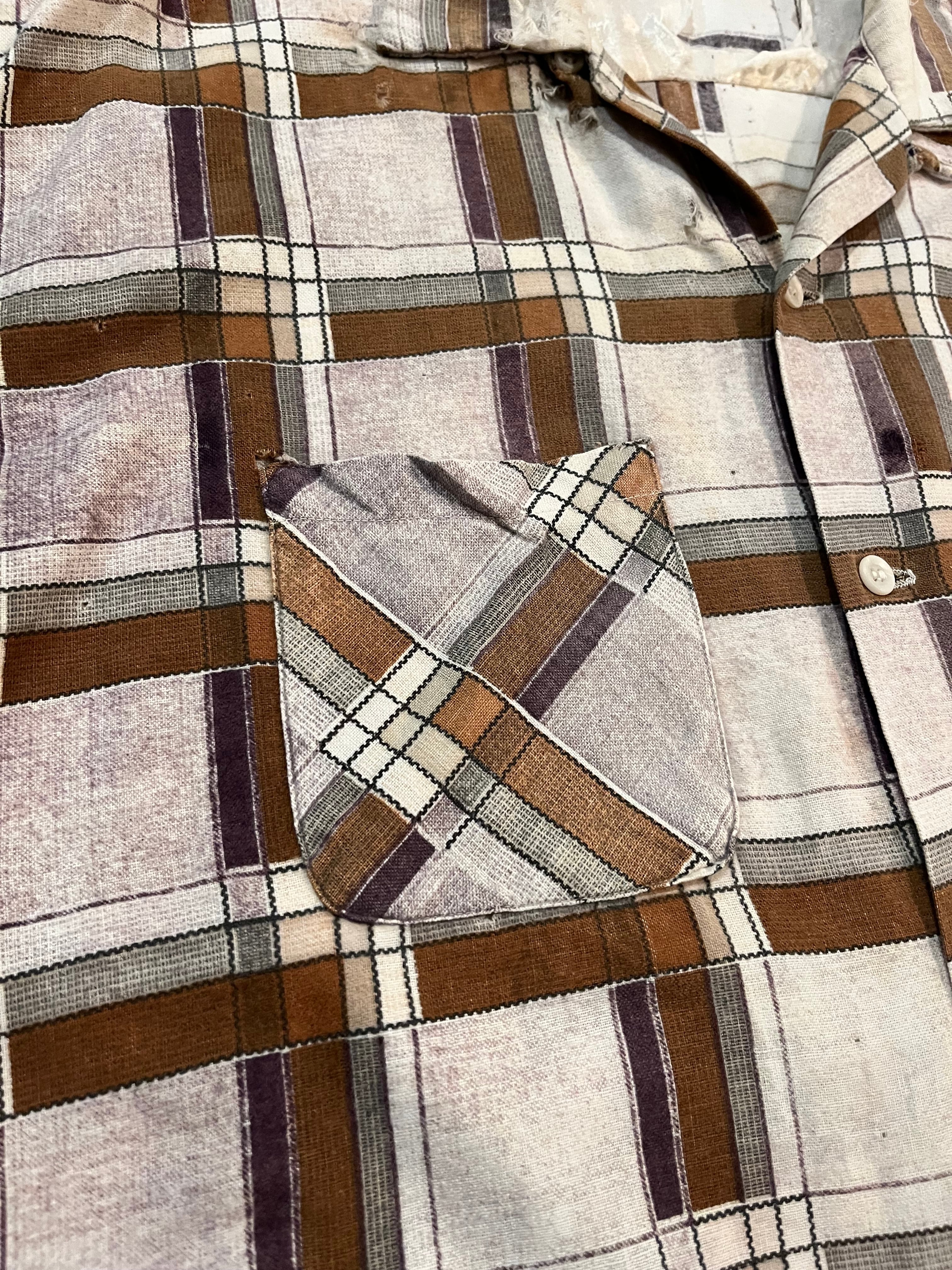 1950s Towncraft print flannel open collar shirt